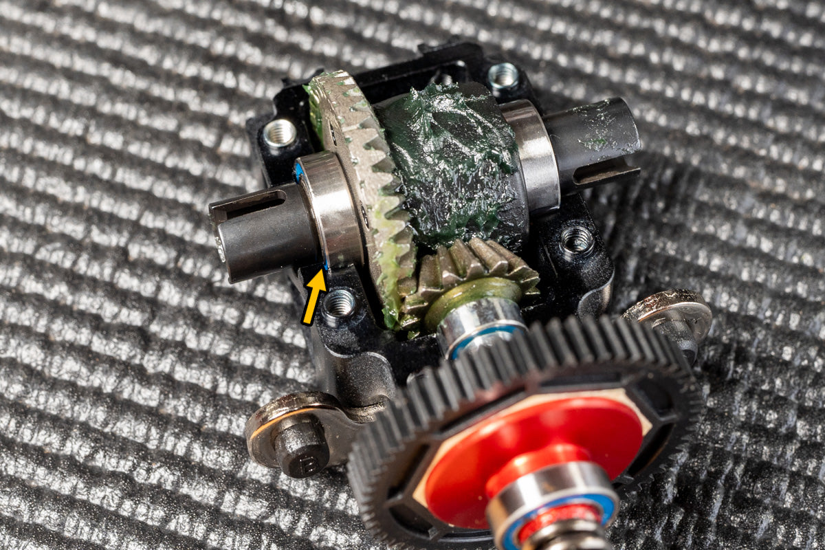 The heavy metal ring gear needs to be clamped to the plastic diff case well enough that there's no side load applied to the screws. It's a steep request for the tiny stock hardware.