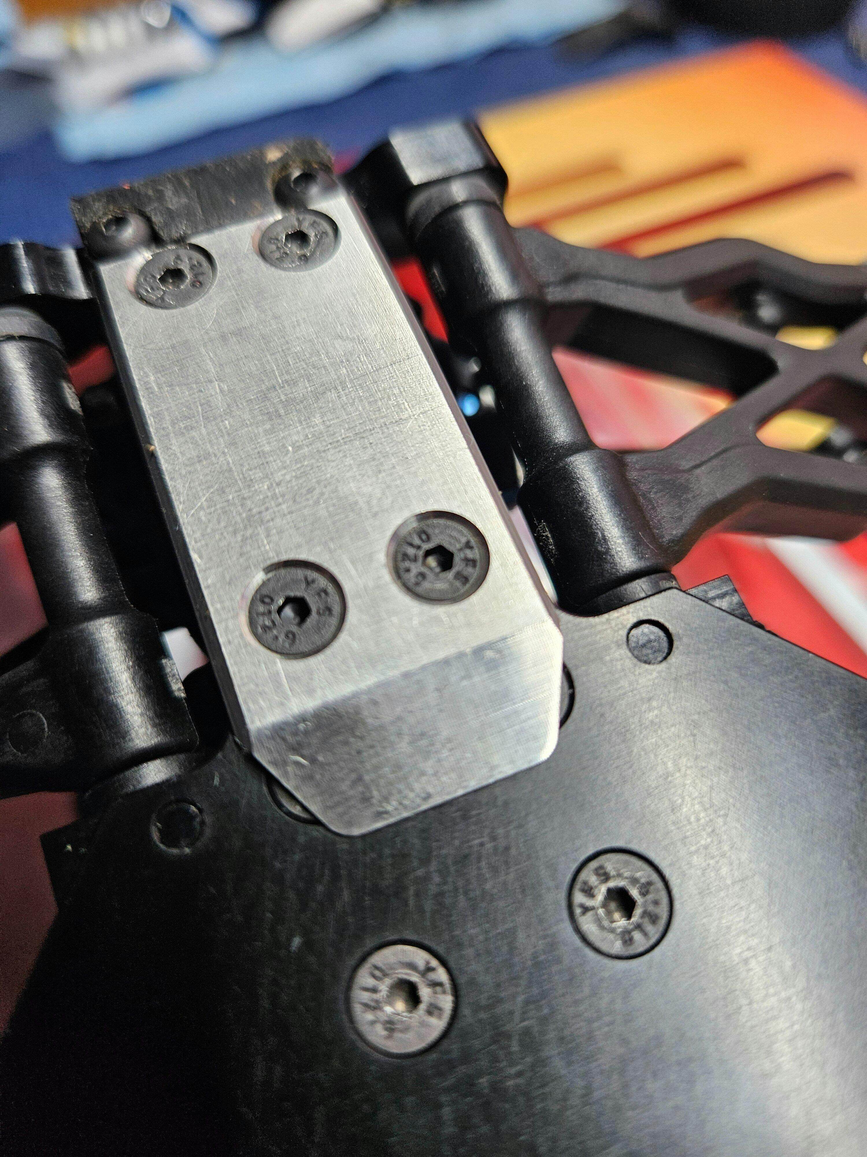 This CNC machined Grade 5 titanium skid plate adds a high chance of throwing dazzling white sparks when the rear of your car scrapes the track or other hard surface (particularly on steep jump faces, bumps, or hard landings).