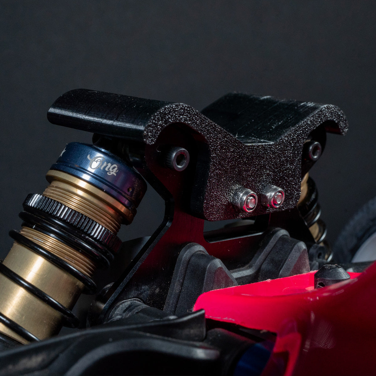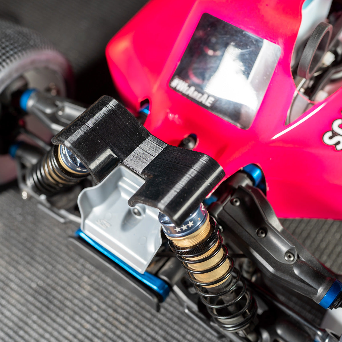Our heavy duty shock tower cover adds smooth protection to your Associated RC8B4.1 (nitro or electric). Protect your tower and shock caps from wear, and help absorb impact force.