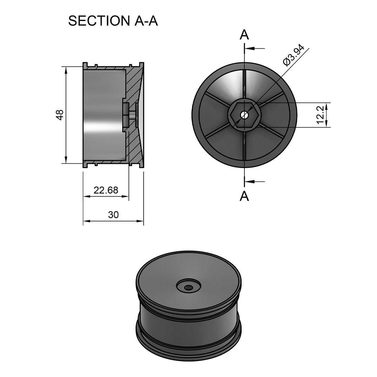 Scale Speed 1/14 buggy wheel designed for fitment on the LC Racing EMB-1, BHC-1, Team Associated Reflex 14B/14T, and Arrma Typhon Grom.