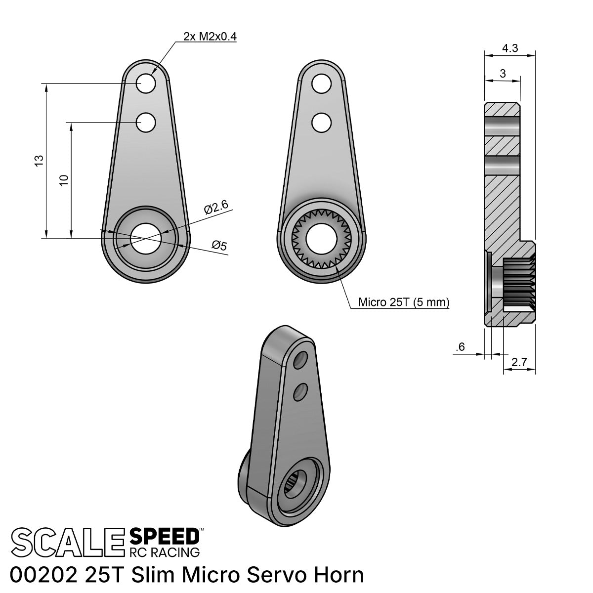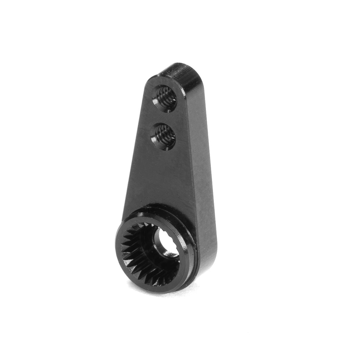 This aluminum servo horn is optimized for fitment on LC Racing 1/14 EMB and BHC platforms when using an aftermarket servo with a 25T micro spline. The horn features two options for the steering linkage (10 mm or 13 mm center-to-center) which are threaded M2 for a flawless fit with the existing steering system.